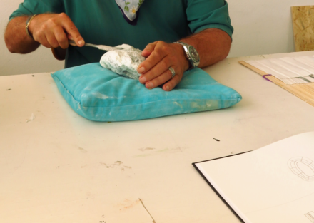 Während des Bearbeitens des Steines entsteht ein Dialog. So kristallisiert sich die ursprünglich rohe, noch versteckte Schönheit des jeweiligen Steines zu einer individuellen stimmigen Form.