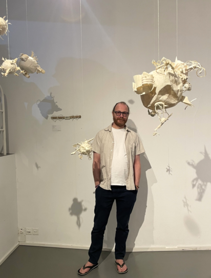 Räumlich arbeitet Dani Schwander sowohl mit den klassischen Materialien Ton oder Holz als auch mit dem Alltagsmaterial Malerklebeband. Damit gestaltet er ausufernde, detailreiche und faszinierende Miniatur-Welten. Diese sind nicht nur ein geschrumpftes Abbild der Welt, in der wir leben, mit all ihren Banalitäten und Kuriositäten. Die Miniaturen sollen vor allem auch kritische, irritierende, anregende Geschichten erzählen und damit bei den Betrachter:innen etwas auslösen.