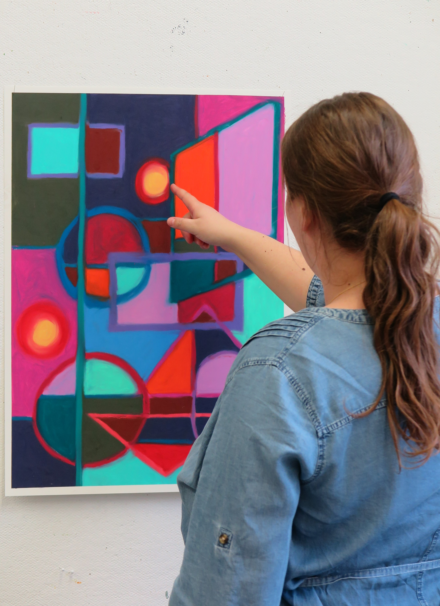 «Meine Bilder sollen etwas erzählen – mit Farben und Formen statt mit Worten», reflektiert Rahel Schwarzentruber. «Sie laden die Betrachterin, den Betrachter zu einer Reise in unbekannte Welten ein. Teils komplex, einfach, verzerrt, klar, wild, ruhig, entspannt, intensiv, kommen die Bilder daher», erklärt Rahel, «sie zeigen mein inneres Geschehen im Moment des Malens. Es freut mich, wenn meine Bilder Emotionen auslösen und im Kopf bleiben. Die Bilder sollen guttun und etwas bewirken!»